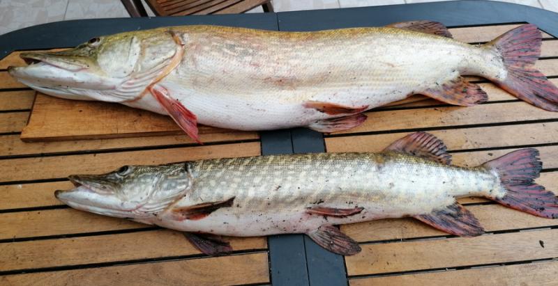 Voici ce qui arrive lorsque l'on a un pêcheur personnel...de 'belles' surprises de temps en temps, sorties tout droit de la rivière qui se trouve à 500 m de la maison! Aujourd'hui; la surprise est un brochet de 5 kg 900...et un autre beaucoup plus 'petit'...seulement 2 kg!!! lol