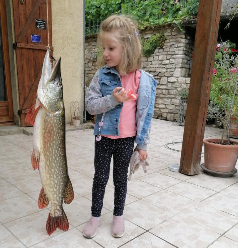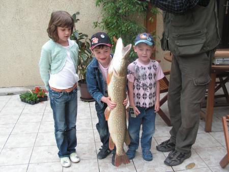celà m'a rappelé quelques vieux souvenirs....il y a 13 ans, papi avait déjà impressionné ses 3 autres petits-enfants, en sortant ce 'monstre' de la rivière; 105 cm pour 7 kg 800!