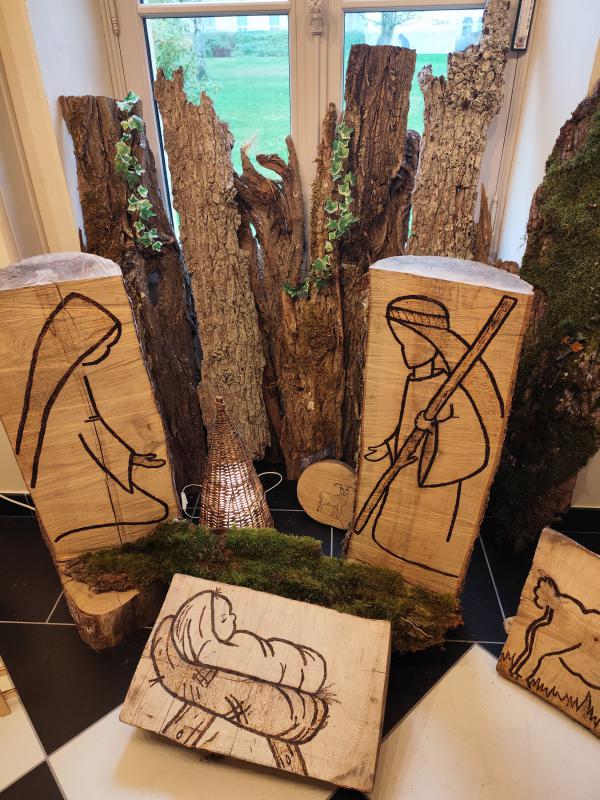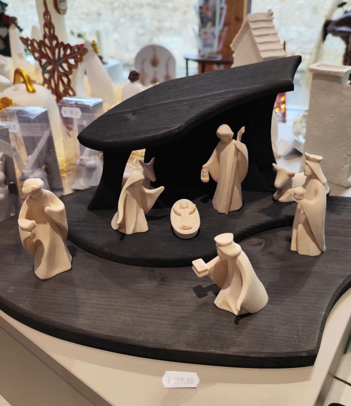 Près de cette exposition, il y a une jolie boutique ouverte toute l'année où on peut acheter de nombreux produits locaux, dont des chocolats, caramels, fromages etc, etc fabriqués par les soeurs...et on y trouve aussi des crèches, comme celle- ci ; la crèche de l'abbaye...