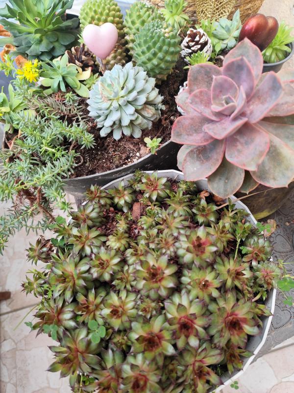 J'en profite pour vous montrer ces quelques succulentes qui ont passé l'hiver sous la pergola...je les avais protégés avec un voile quand nous avons eu quelques 'belles' gelées !