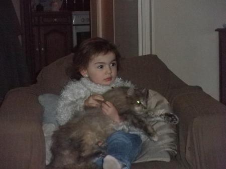 Pourtant Maëva qui a 3 ans n'est pas spécialement tendre avec elle,surtout quand elle l'attrape sous son bras et qu'elle la balade dans toute la maison!!!