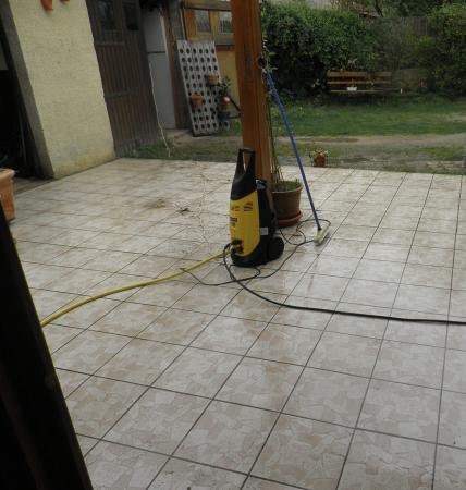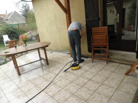 JC a décidé que c'était le bon moment pour faire un grand nettoyage de printemps sur la terrasse,il a donc employé les grands moyens en sortant le nettoyeur vapeur,c'est vrai qu'elle en avait bien besoin!