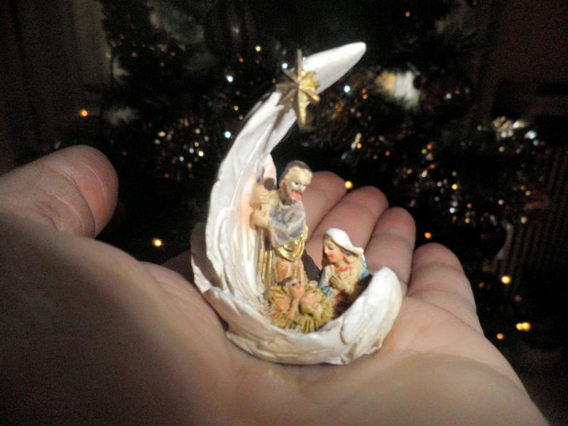 Comme vous pouvez le voir,cette crêche est vraiment toute petite;elle tient dans le creux de ma main....