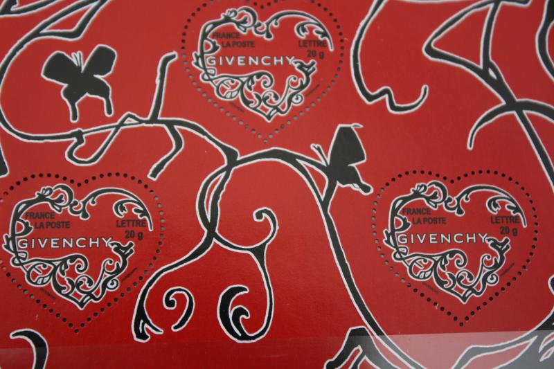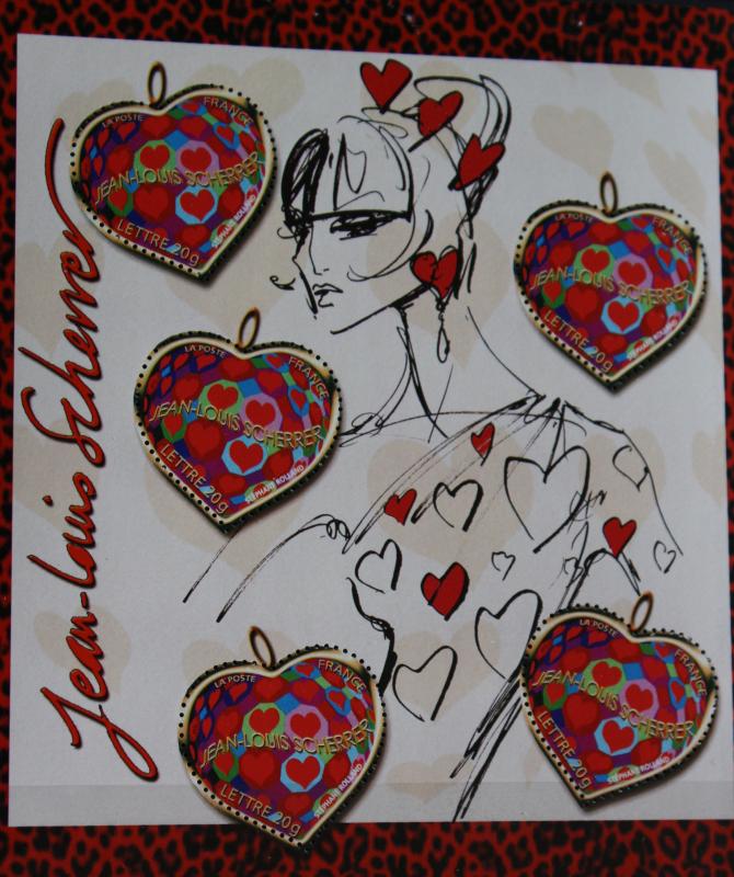La poste française émet régulièrement des timbres pour cette saint Valentin depuis 1997. A partir de 2000,elle les fait dessiner par des stylistes de maisons de couture renommées ou par des artistes célèbres. J'ai donc choisi de vous montrer ceux édités par ces stylistes...(c'est un photographe qui a choisi le timbre en 2002)