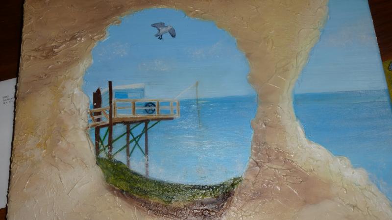 mon tableau encadré terminé. j'ai prolongé la peinture  sur le cadre (huile)