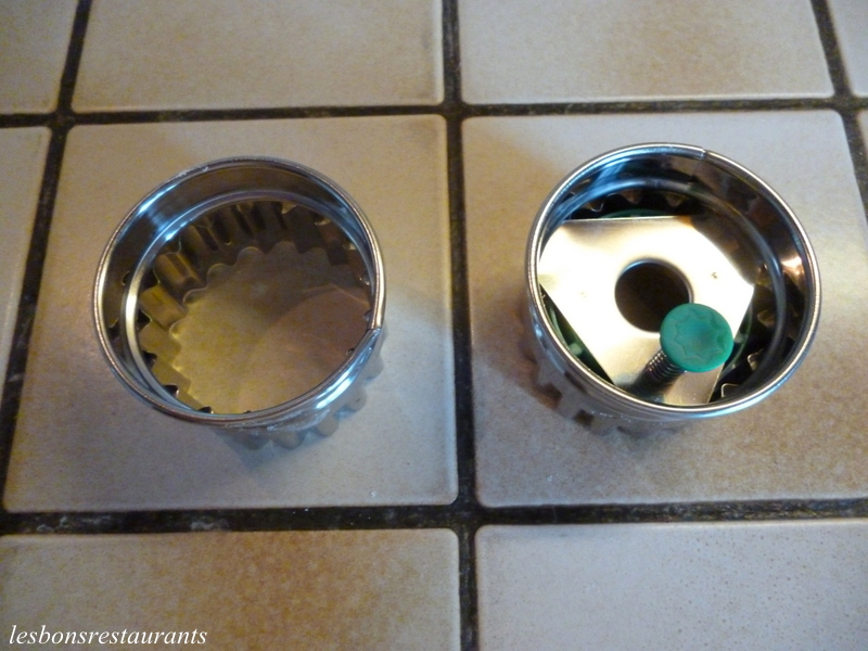 C'est lors de cette balade que j'ai pu dénicher ce fameux moule à Bredeles et plus exactement des moules à Spätz Buawa (vu à l'émission "Midi en France")! Deux ustensiles.... -le premier pour réaliser des formes rondes normales -le second pour réaliser des formes rondes avec un un petit trou au milieu. Que diriez-vous de pousuivre cette conversation dans ma cuisine....je vais vous préparer des "Spätz Buawa" ou "Petits coquins" (voir la recette sur ce lien)!