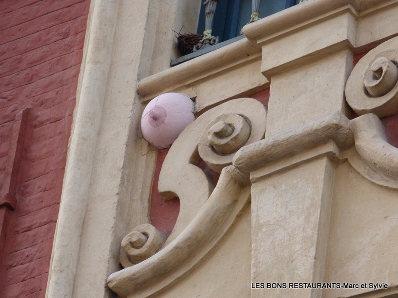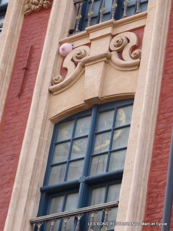Si vous l'observez bien, vous y verrez des boulets de canon encastrés faisant référence à la résistance héroïque lilloise de 1792.... .....ou bien un faux boulet de canon transformé en sein rappelant l'ancienne activité de l'établissement!