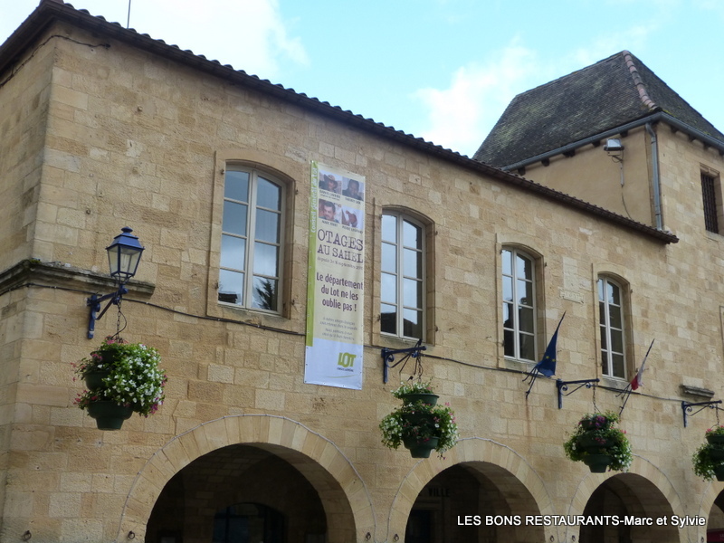 La Bouriane est une région naturelle située pour une part dans le département du Lot et pour une autre part dans le département du Lot-et-Garonne. La meilleure façon de découvrir cette région est de prendre de la hauteur! Suivez-nous! Vous pouvez voir ou revoir notre balade à Gourdon depuis le début en cliquant sur ce lien. Cliquez sur les photos pour les agrandir! À notre sortie de l'église Saint-Pierre nous sommes passés devant l'Hôtel de ville.