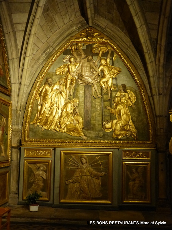 Durant la longue période des travaux des 17e et 18e siècle, l'office y est célébré. La salle capitulaire devient chapelle au 17e siècle sous le nom de Notre-Dame-de-Pitié. Sous la Vierge de Pitié est représentée la Cène sur le devant d'autel.
