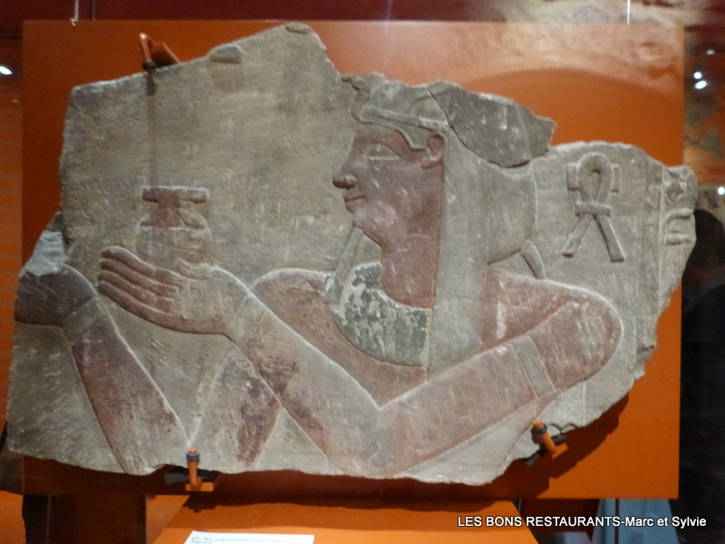 Auguste est représenté en Pharaon! Il fait offrande de vases globulaires à la divinité. Cônes funéraires!