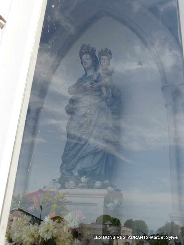 Après le dynamitage du pont par les allemand le 30 juin 1944, la statue de la Vierge est l'un des seuls éléments encore debout avec la pile la supportant.