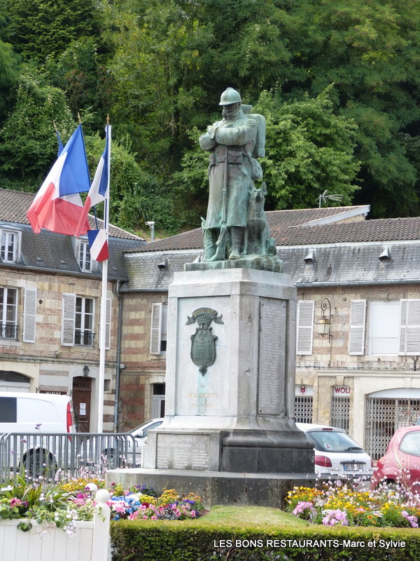 Dû au sculpteur De Tarnousti, la statue représente un Poilu en sentinelle dans la forêt d'Argonne accompagné de son chien. Depuis des années, le monument a perdu ses obus et ses chaînes et le Poilu la baïonnette de son fusil!
