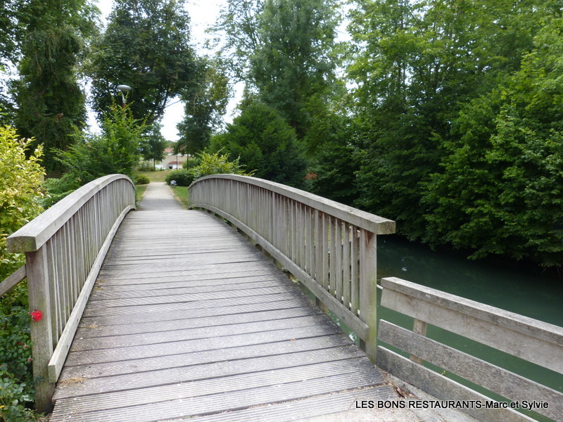 Cette passerelle franchit l'Aisne et permet de vous rendre vers les jardins de l'hôpital. Lors des saisons pluvieuses, les crues de l'Aisne provoquent des inondations souvent spectaculaires.