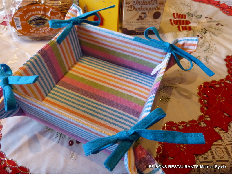 Aujourd'hui, je remercie Françoise du blog "grainedesucre" pour le paquet bien sympathique qu'elle nous a envoyé! Cette corbeille à pain est magnifique! Aux couleurs chaleureuses, elle va illuminer notre table de Noël!