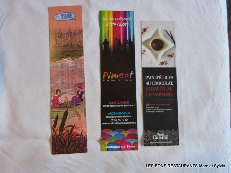 Le petit plus de ce très beau cadeau est la découverte, au coeur d'un livre, de ces trois marque-pages....sur un de ces marque-pages....une superbe recette qui attend déjà dans la cuisine!
