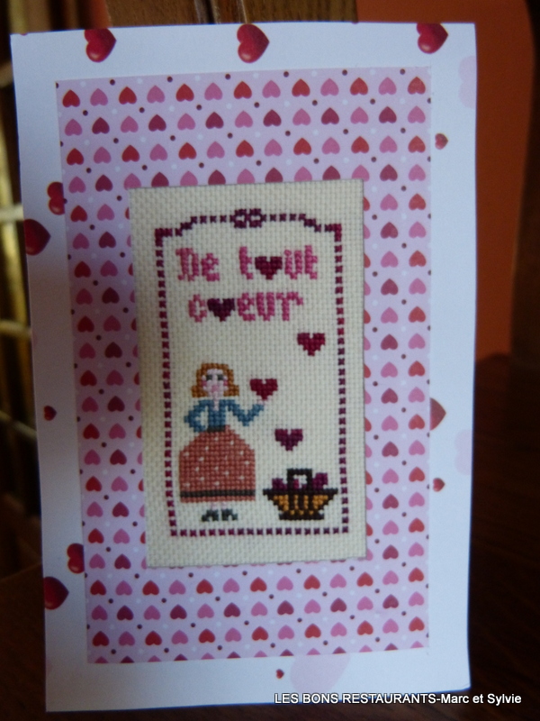 Aujourd'hui, je mets à l'honneur Françoise du blog "La Guillaumette" pour sa belle carte brodée à la main....une carte jolie.....comme un coeur!