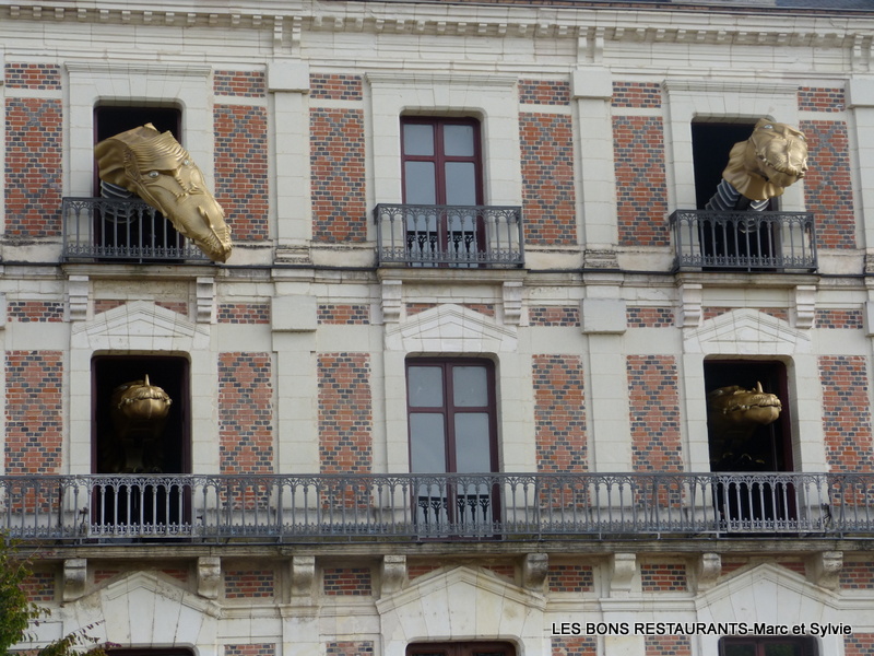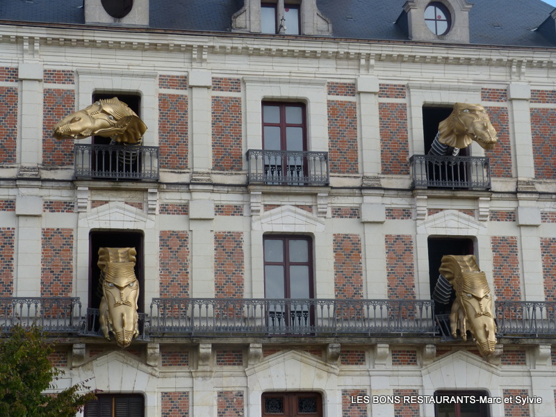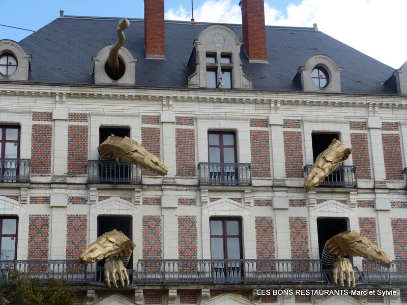 Nous étions donc sur cette place à admirer la belle façade du château Royal de Blois lorsque notre regard a été attiré par un drôle de spectacle au niveau de la façade de la maison de la magie!