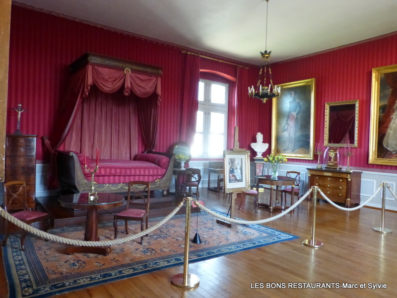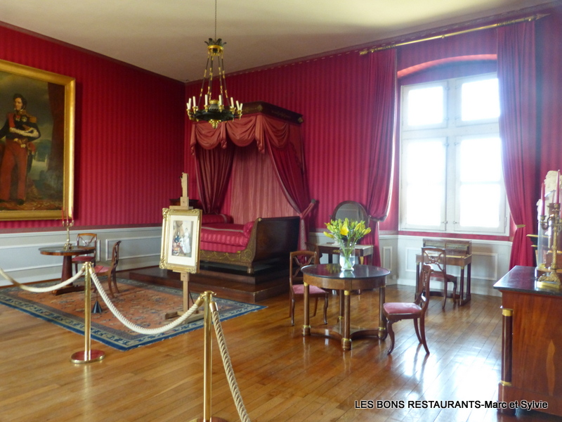 Les idées avancées et la grande popularité de Louis-Philippe le poussent vers le trône! Ainsi débute un règne de 18 années plus connu sous le nom de "monarchie de Juillet"! Cette chambre est meublée de style "Premier Empire" avec un lit en bateau, un secrétaire, un guéridon au piètement de quatre colonnes, une commode en bois plaqué d'acajou.