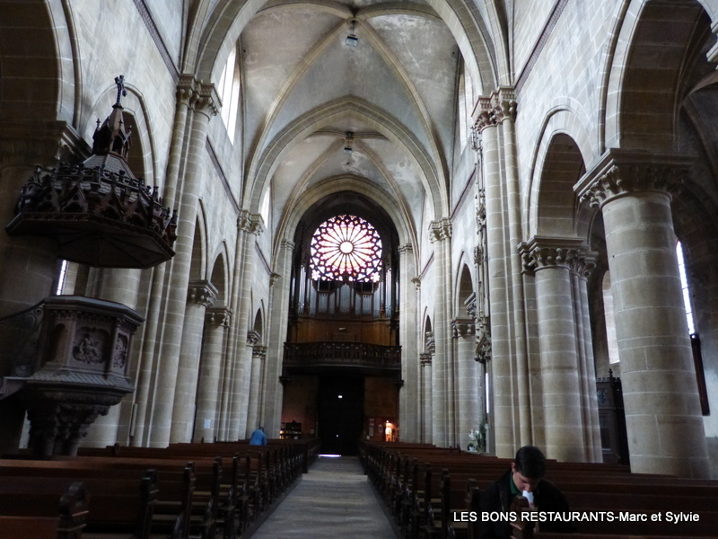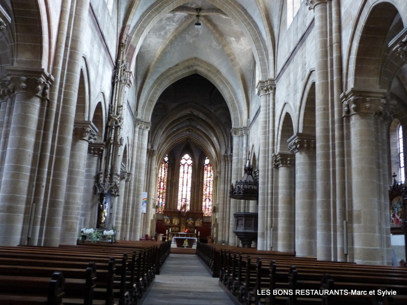 Mais c'est au 11e siècle que commence la construction en grès jaune d’une église digne de ce nom, sans doute sur l’emplacement d’un premier sanctuaire, église dédiée à Notre-Dame de l’Assomption. Après avoir admiré l'extérieur de l'église, poussons la porte! Vous pouvez voir ou revoir notre balade découverte de Rouffach depuis le début en cliquant sur ce lien! Cliquez sur les photos pour les agrandir! (11 clichés) Les deux premières travées de la nef datent de la campagne du début du siècle, les vaisseaux étant séparés par des arcades en arc brisé, avec alternance de piles fortes et faibles.