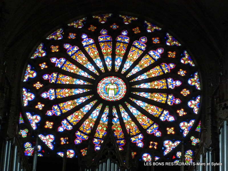 ....et par l'église Notre-Dame de Paris pour la rose rayonnante à vingt lancettes, enfoncée dans un encadrement carré.