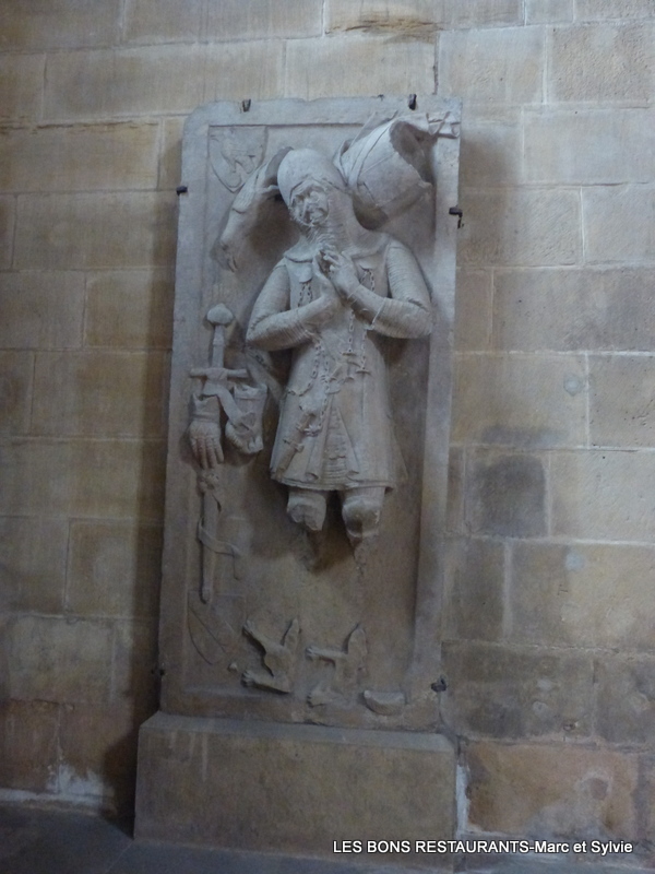 Cette dalle funéraire en grès jaune représente le chevalier Werner Falcke de Munsweiler, sans doute réalisée par Wölfflin de Rouffach vers 1340, peu après la mort du chevalier. Ce dernier est représenté en prières, avec ses armes et ses armoiries.
