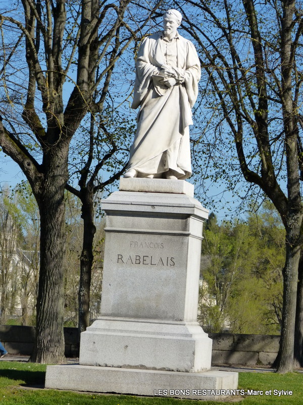 Tours, capitale de la Touraine, est, historiquement, le plus important site de Touraine. Nous vous proposons, aujourd'hui, une nouvelle série, "Un petit tour dans l'histoire"! Cet article servira de récapitulatif à notre balade découverte de Tours! -Restaurant Le Chien Jaune (voir le lien) -Un petit tour dans l'histoire (ici) -Flâneries (voir l'article sur ce lien) -Le château (voir l'article sur ce lien) -Le pont Saint-Symphorien (voir l'article sur ce lien) -Image du jour (voir le lien) -Cathédrale Saint-Gatien (voir l'article sur ce lien) -Cathédrale Saint-Gatien(II)(voir l'article sur ce lien) -Une porte pour ma collection (voir le lien) -Cathédrale Saint-Gatien (III) (voir l'article sur ce lien) -Basilique Saint-Martin-2016 Année Saint-Martin (voir l'article sur ce lien) -Basilique Saint-Martin- De grandes Dimensions (voir l'article sur ce lien) -Basilique Saint-Martin-Autel de la Vierge et Crypte (voir l'article sur ce lien) -Basilique Saint-Martin-Quelques vitraux (voir l'article sur ce lien) -Basilique Saint-Martin-Quelques Statues et sculptures (voir l'article sur ce lien) Vous pouvez voir ou revoir notre balade découverte de La Vallée des Rois depuis le début en cliquant sur ce lien! Cliquez sur les photos pour les agrandir! Nous commençons notre promenade et nous découvrons une belle statue de François Rabelais, écrivain français humaniste de la Renaissance, né à la Devinière à Seuilly, près de Chinon et intimement lié à la commune de Tours!