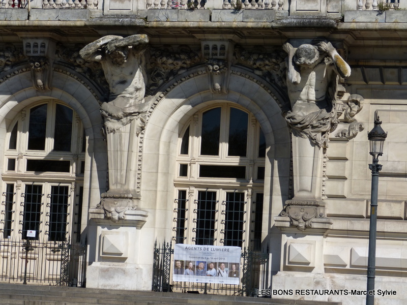 Sur la façade, on trouve quatre atlantes de François Sicard. À gauche et à droite de l'horloge, deux cariatides, le Jour et la Nuit. Deux personnages allongés représentent la Loire et le Cher. Les deux ailes sont décorées. À l'ouest, le Courage et la Force, et à l'est, l'Éducation et la Vigilance. À demain!