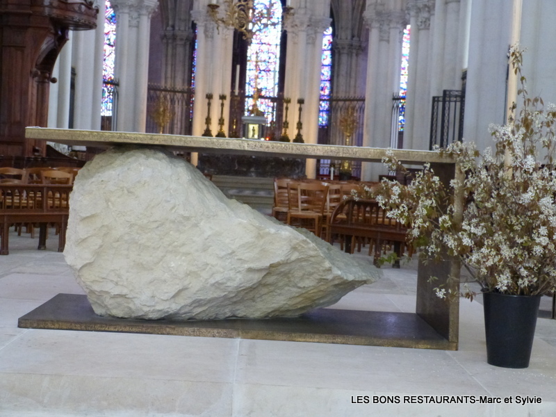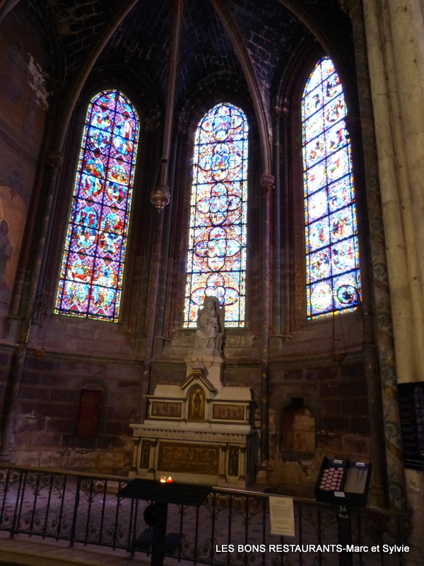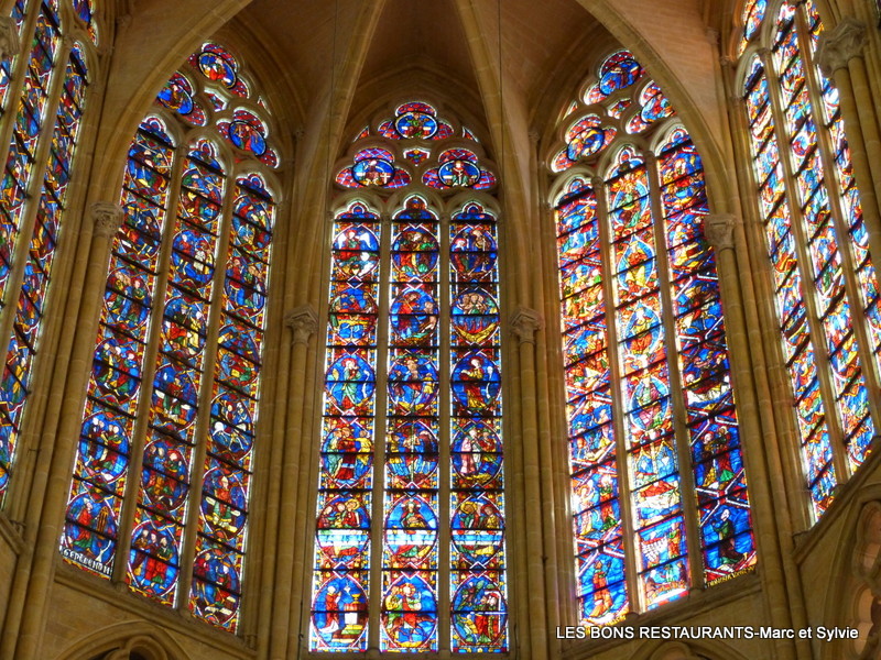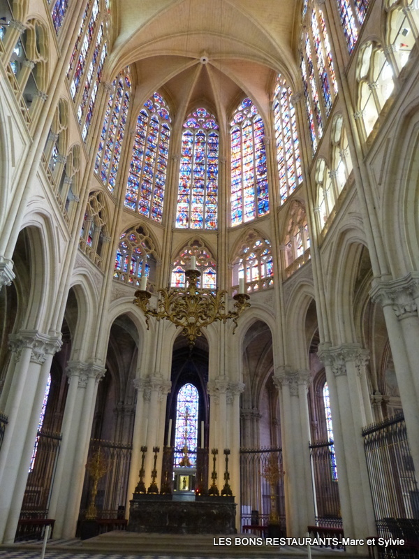 Les 15 verrières du choeur et les trois rosaces sont remarquables.