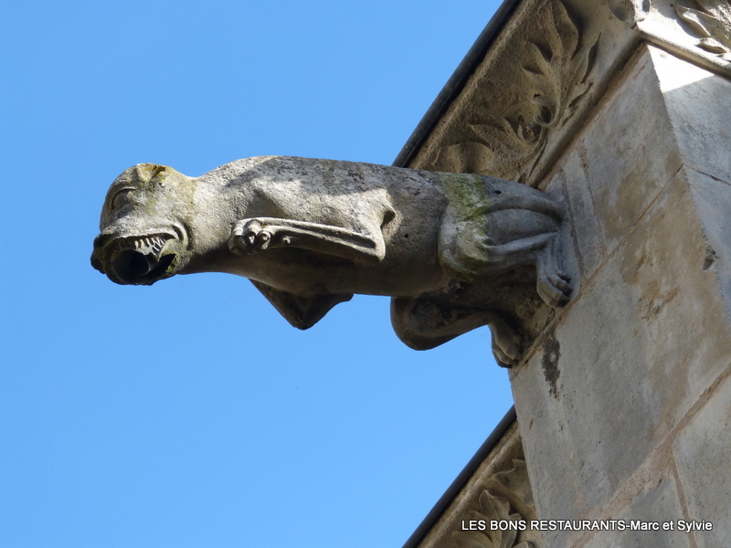 Vous avez été, comme nous, pris par cette ambiance calme et sereine qui se dégage de cet ensemble! Ce qui nous a également surpris c'est que cloître de la cathédrale de Toul est pourvu d'un grand nombre de gargouilles figurant des animaux et des clercs! Vous pouvez voir ou revoir notre balade à Toul depuis le début en cliquant sur ce lien. Cette gargouille montre une sorte de dragonne et son petit, qui lui mordille le menton!