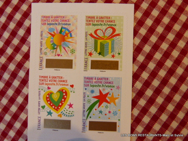 Ces timbres "bonne année 2016", sont des timbres à gratter! Des tas de cadeaux sont en jeu!