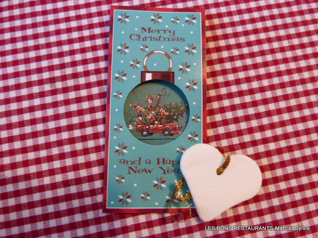Marc et moi avons reçu, hier, un paquet bien sympathique, un cadeau de Noël un peu en avance! Cette jolie bidouille réalisée par Nadou va décorer notre sapin de Noël!