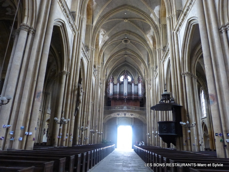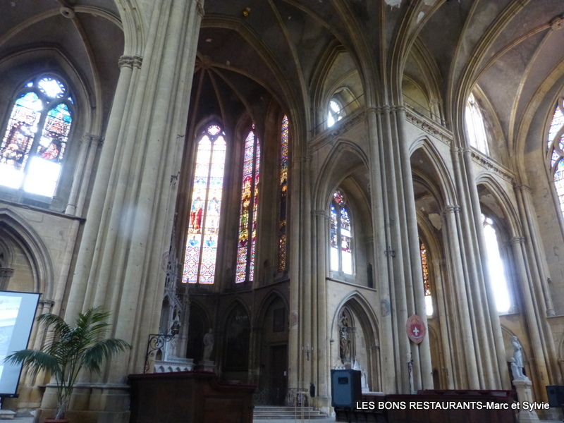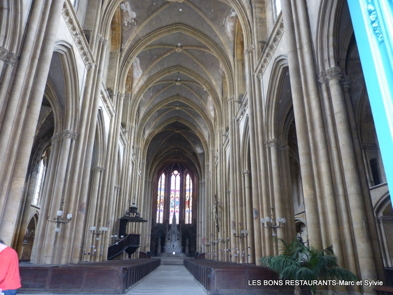 Fortement influencée par le style de la cathédrale de Toul, les formes sont élancées, les arcades brisés étroites, les voûtes hautes et les transepts y sont largement vitrés.
