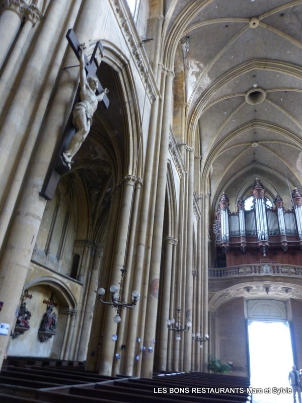L’abbaye Saint-Vincent fut fondée en l'an 968 par l'évêque de Metz Thierry 1er, successeur de saint Clément. L'église abbatiale Saint-Vincent est la plus grande de Metz, après la Cathédrale, et fut construite de 1248 à 1376 dans un style roman puis gothique rappelant la cathédrale de Toul. Vous pouvez voir ou revoir notre balade dans le quartier de la Comédie à Metz depuis le début en cliquant sur ce lien! Cliquez sur les photos pour les agrangir! (18 photos) La façade montre un premier niveau d’ordre dorique, un second d’ordre ionique et un dernier niveau d’ordre corinthien.