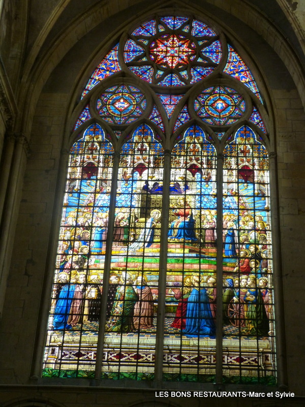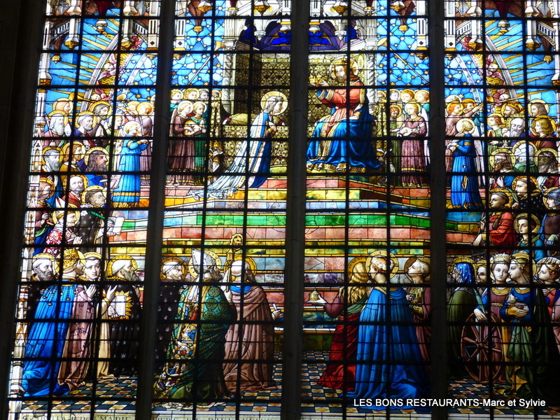 Le plus beau vitrail de la basilique Saint-Vincent est celui du Couronnement de la Vierge de l’atelier de Laurent-Charles Maréchal.