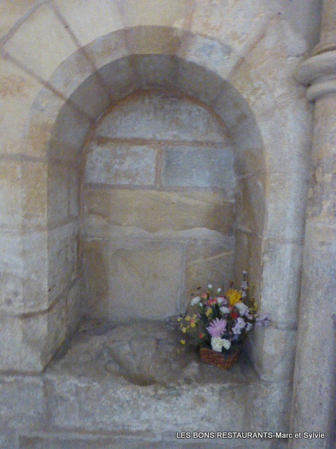 Elle servait pendant la messe à déposer et vider les burettes. C'est donc un équipement lié au rituel de purification. Inclus généralement dans l'épaisseur d'un mur intérieur, non loin du chœur, cette piscine n'est en général pas taillé dans une seule pierre, mais trouve sa place dans l'agencement de la maçonnerie, en creux comme une niche. Elle peut être plus ou moins richement sculpté. Nous avons ici une croisée d'ogives avec une belle clef de voûte!