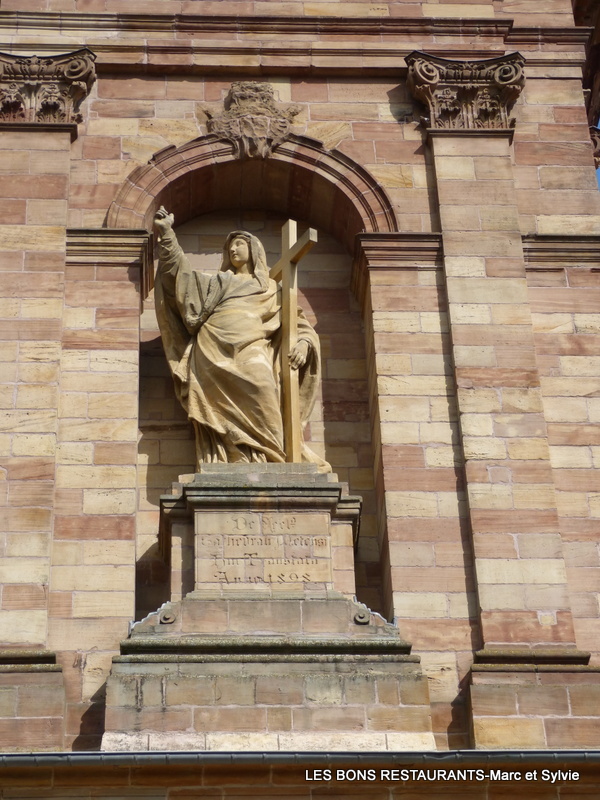 « Saint-Avold a joué un rôle de premier plan dans l’histoire lorraine. Elle abritait dans ses murs des ducs de Lorraine, des rois de France et des empereurs d’Allemagne ». Saint-Avold est une commune située dans le département de la Moselle en Région Lorraine! Ce jour là, nous sommes partis pour la journée! Nous avions décidé de visiter la très jolie abbatiale Saint-Nabor! Cet article servira de récapitulatif à cette balade en Moselle-Est! -Patrie des ducs de Loraine, des rois de France et des empereurs d'Allemagne (ici) -Les orgues de l'abbatiale (voir le lien) -Un petit tour en ville (voir le lien) -Maison natale de Pierre-Victor Braun (voir le lien) -Quelques portes (voir le lien) -Faulquemont-Au pays de Tintin (voir le lien) Cliquez sur les photos pour les agrandir! (12 clichés) Dominant le parvis dans une niche d’architecture, la STATUE dite DE LA FOI, ou de la religion, provient du portail classique de la cathédrale de Metz, portail dû à l’architecte BLONDEL et remodelé en 1898.