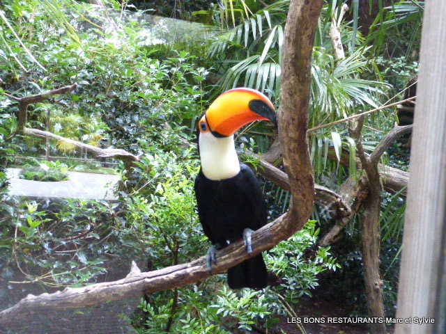 Paré d’un plumage à dominance noire, il est en revanche muni d’un bec immense aux couleurs chamarrées, et dont la taille peut atteindre la moitié de la longueur totale de l’oiseau. Notre ami le paon....