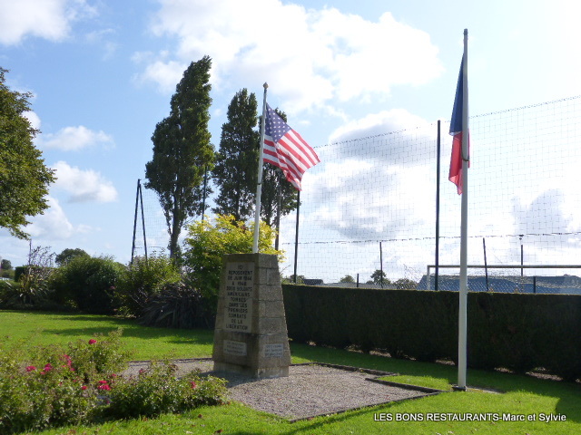 À proximité du stade actuel, une stèle signale l'existence d'un cimetière Américain. Il s'agit du "US Cemetery n°1", premier cimetière Américain créé en France. Un second cimetière fut ouvert de l'autre côté du village, route de Chef-du-Pont, le "US Cemetery n°2". Le 14 juillet 1944, le Général Théodore Roosevelt, cousin du Président Roosevelt, fut inhumé au cimetière n°2. En tout 14 000 soldats américains furent inhumés dans les cimetières de Sainte-Mère-Église. La maison brûlée!