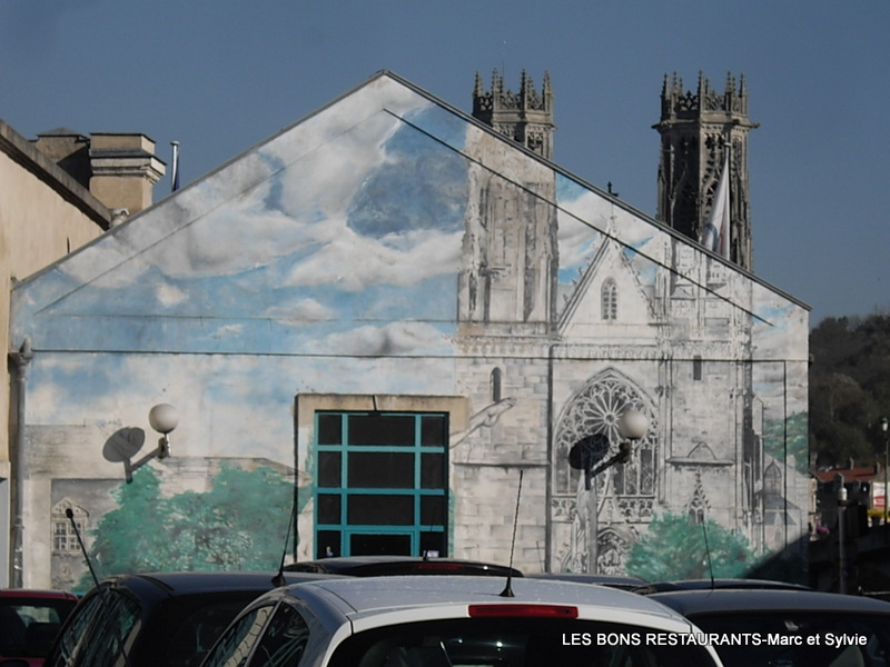 Il en est un que Nicolas m'a révélé! Cette peinture murale se situe en plain centre de Pont-à-Mousson au niveau d'un parking! Elle représente une partie de l'église saint-Martin située de l'autre côté du pont Gélot! Vous voyez bien les deux tours de l'église sur la peinture et les deux tours en vraie juste à côté! Mais si vous ajustez votre image....vous avez la peinture et l'église qui ne font plus qu'un!