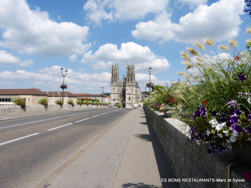 Ce pont est l'emblème de la cité car c'est un lien indispensable entre les deux rives (Saint-Laurent et Saint-Martin) qui relient la ville à la butte de Mousson! Je vous invite à voir ou à revoir la butte de Mousson en cliquant sur ce lien! De ce pont le panorama est magnifique! Nous passons sur la Moselle et la vue s'étend jusqu'à la butte de Mousson.