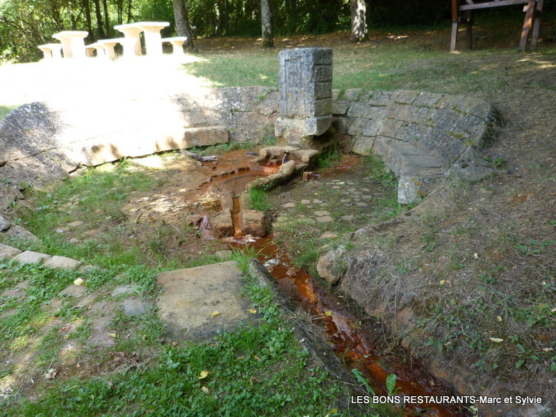 Cette eau ferrugineuse coule depuis des siècles et ne s’est jamais tarie. La Fontaine Rouge se classe parmi les eaux minérales froides, elle contient en quantité notable des sulfates de chaux et magnésie en dissolution, et du sesquioxyde de fer.
