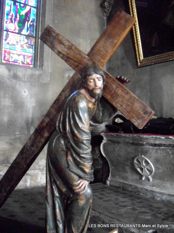 Il fut offert en 1543 par la duchesse de Lorraine Philippe de Gueldre, veuve de René II, au monastère de Sainte Claire de Pont-à-Mousson, où elle s'était retirée. Le Christ portant sa croix est attribué à Ligier Richier, peintre et sculpteur de la Renaissance, que nous avons découvert lors de nos balades dans la région!