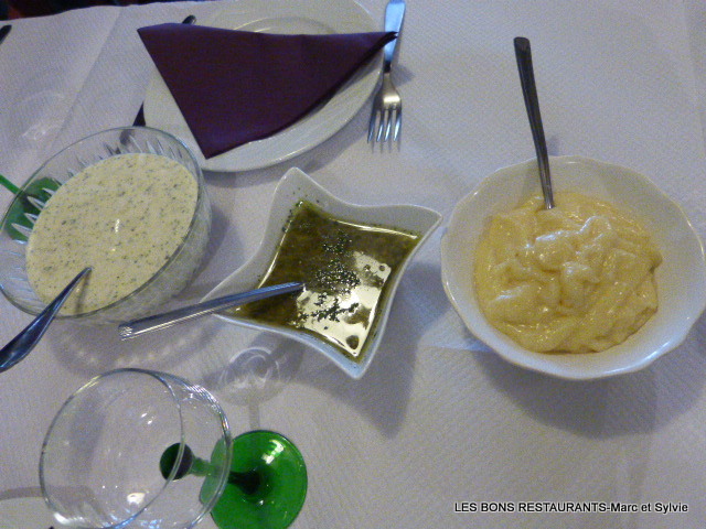 Les trois sauces sont déjà prêtes, vinaigrette, mayonnaise et sauce mousseline. Les asperges passent de table en table et sont servies au fur et à mesure qu'elles sont cuites!