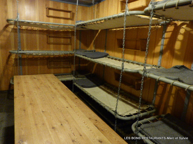Les soldats dormaient dans de petites pièces avec des couchettes étroites suspendues au plafond par des chaînes.