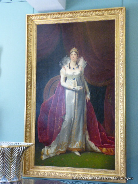 Et ce salon contient un ensemble de portraits de la famille impériale dont un de Joséphine et un de Napoléon. Ici, un tableau représentant Hortense Eugénie Cécile de Beauharnais, reine consort de Hollande, fille de Joséphine. "Napoléon Ier en costume de sacre" réalisé vers 1805 par François, baron Gérard.