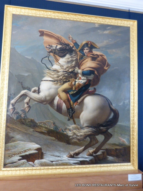 À l'étage, à gauche, il y a la salle Marengo qui, elle, abrite le célèbre tableau de Jacques-Louis David Bonaparte franchissant le col du Grand Saint-Bernard, pièce majeure de la collection du musée.