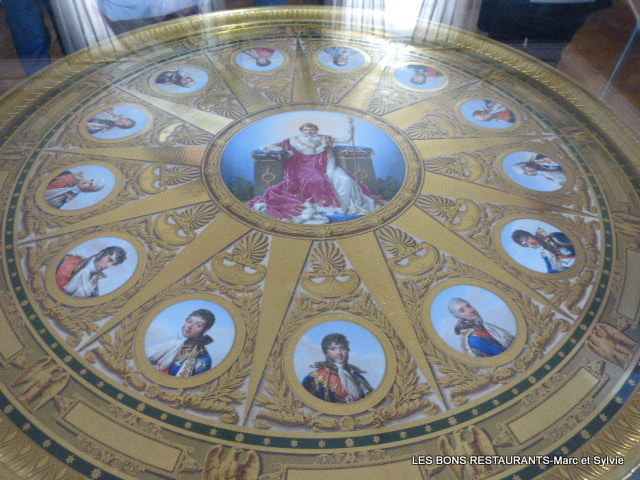 Est exposée laTable D’Austerlitz chef-d’œuvre de la Manufacture de Sèvres commandé en 1806 par l’Empereur pour commémorer la victoired’Austerlitz remportée l’année précédente. Le plateau représente en son centre Napoléon en costume de sacre et autour de cette figure les portraits des maréchaux qui l’avaient accompagné dans cette campagne.