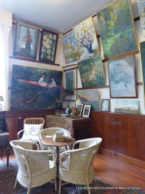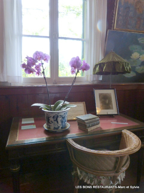 D’abord, nous découvrons la chambre de Monet qui a fait en 2013 l’objet d’un minutieux travail de reconstitution scénographique. Des objets et œuvres picturales sont présents dans la pièce, notamment le cabinet de toilette mitoyen du vivant de Monet, comprenant des reproductions de toiles de ses amis : Cézanne, Renoir, Signac ou Caillebotte.