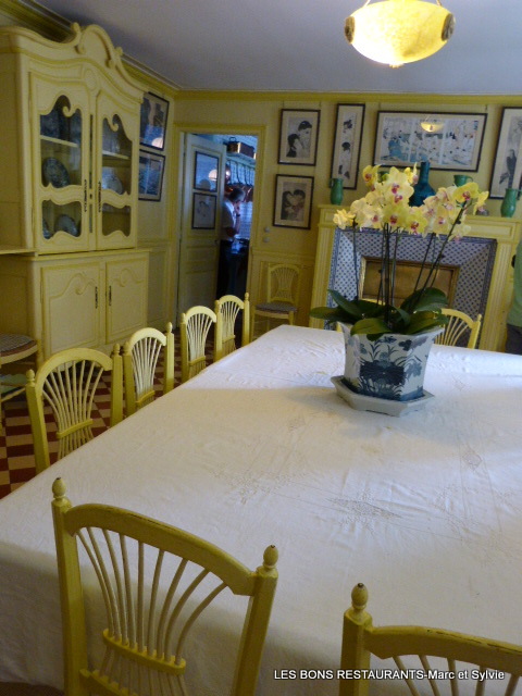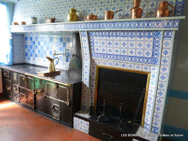 Dans les vitrines, on peut voir la vaisselle en faïence bleue, le service jaune et bleu, que Monet avait fait faire pour les jours de fête. Dans la cuisine aux carreaux bleus de Rouen....
