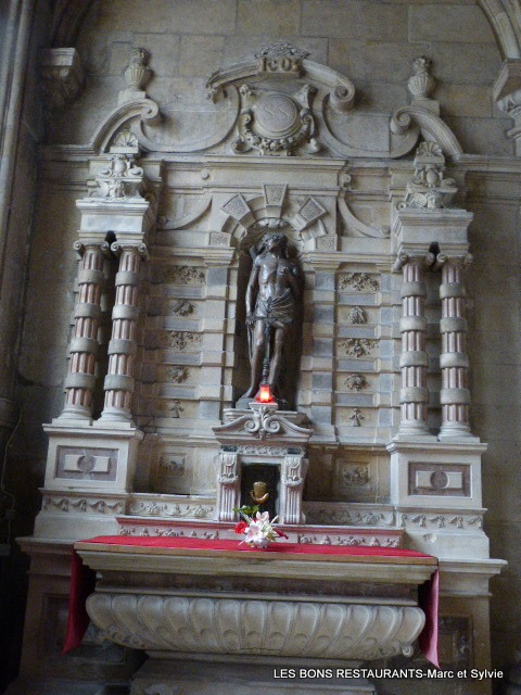 Cette statue a été placée à l'emplacement d'une ancienne chapelle non restaurée dans le bas-côté sud. Le choeur est, aujourd'hui, entouré par les statues des apôtres.
